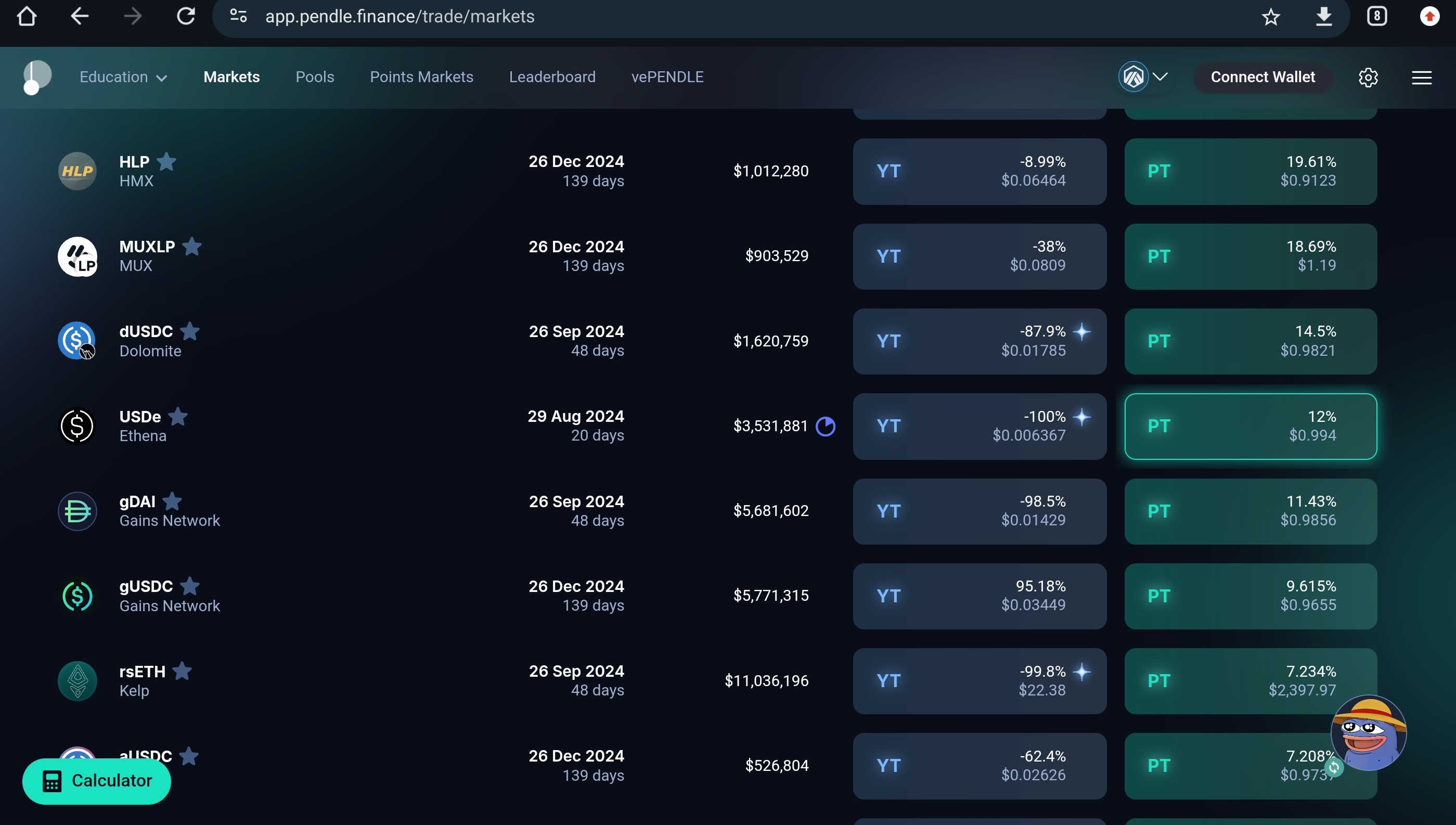 안녕하세요 코젵입니다.이전 글에서 간단한 차익거래로 확정 수익을 올릴 수 있는 방법을 실행하였고 9월 27일 만기로 1.8% 수익을 확정하였습니다.하지만 겨우 이정도 수익은 아쉽죠. Defi 를 이용하여 추가적인 수익을 얻을 생각입니다.  목차. 0. 기존 포지션에서 ETH를 인출 ( 레버리지를 이용한 마진 활용 ) 1. Pendle finance 를 이용하여 확정 수익 올리기 2. Factor Finance 를 이용하여 추가 수익 올리기.  1.  기존 포지션에서 ETH를 인출 ( 레버리지를 이용한 마진 활용 ) * 포지션에서 레버리지를 올리면 해당 포지션에 사용된 증거금의 양이 줄기 때문에  그만큼 내가 출금할 수 있는 양이 생긴다.   하지만 당연히 레버리지를 활용하는 만큼 청산 단가가 생기기 마련..