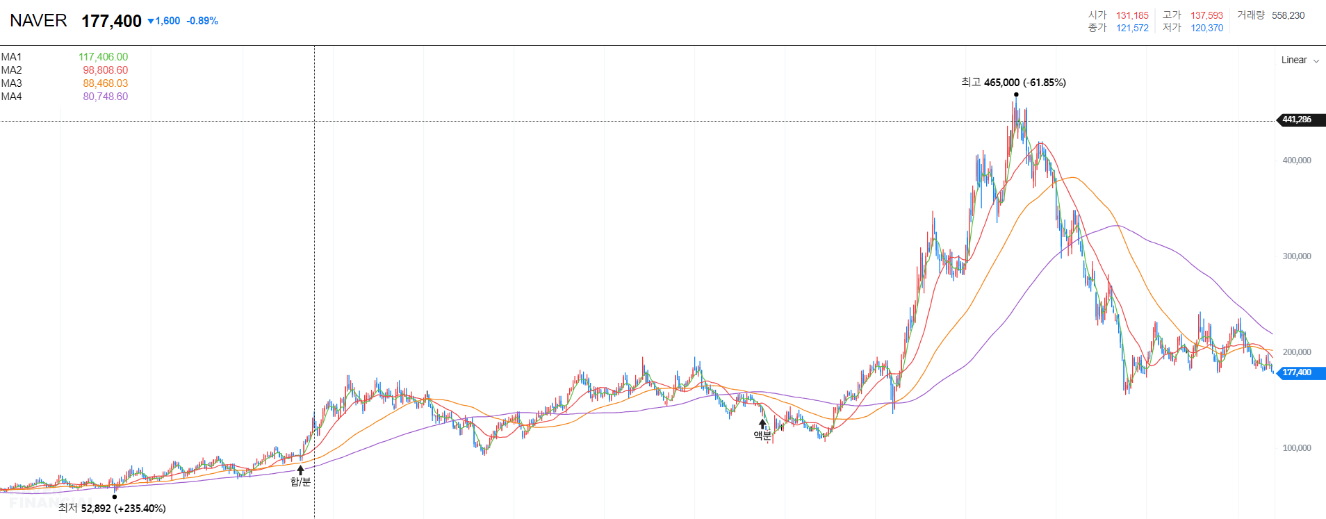 2024.08.17네이버 전체 매도 완료.네이버의 미래 경쟁력은 AI 혹은 플랫폼.AI는 규모의 경제로 해외 기업들과 경쟁력이 없음. [매도]플랫폼..? 네이버 웹툰 나스닥 상장. 주주 기만[매도]안녕하세요 코젵입니다.금일 오전 매수한 종목이 있습니다. 바로 NAVER 입니다.  최근 네이버는 라인 야후 때문에 골머리를 앓고 있는데요.2023년 11월 일본의 국민 메신저인 라인에서 발생한 개인정보 유출을 빌미삼아일본 재무성은 라인의 지배구조에 대해 강력하게 개입하기 시작했고결국 한국 자본이 발을 빼도록 반 협박을 하고 있습니다. 라인은 네이버 (한국) 지분 50% + 야후( 소프트뱅크, 일본 ) 50% 로 이루어진 합작 회사인데요네이버가 라인에서 벌어들이는 금액이 2000억~3000억에 가까울 정도로 네..