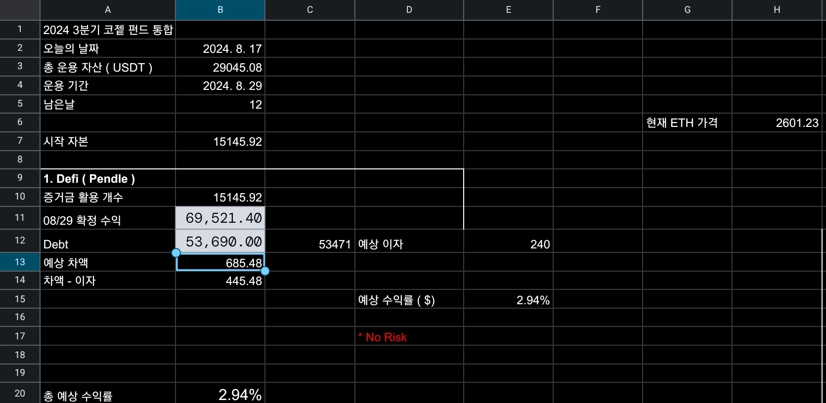 약 40일 정도의 시간 만에 3%의 수익을 예상할 수 있습니다.