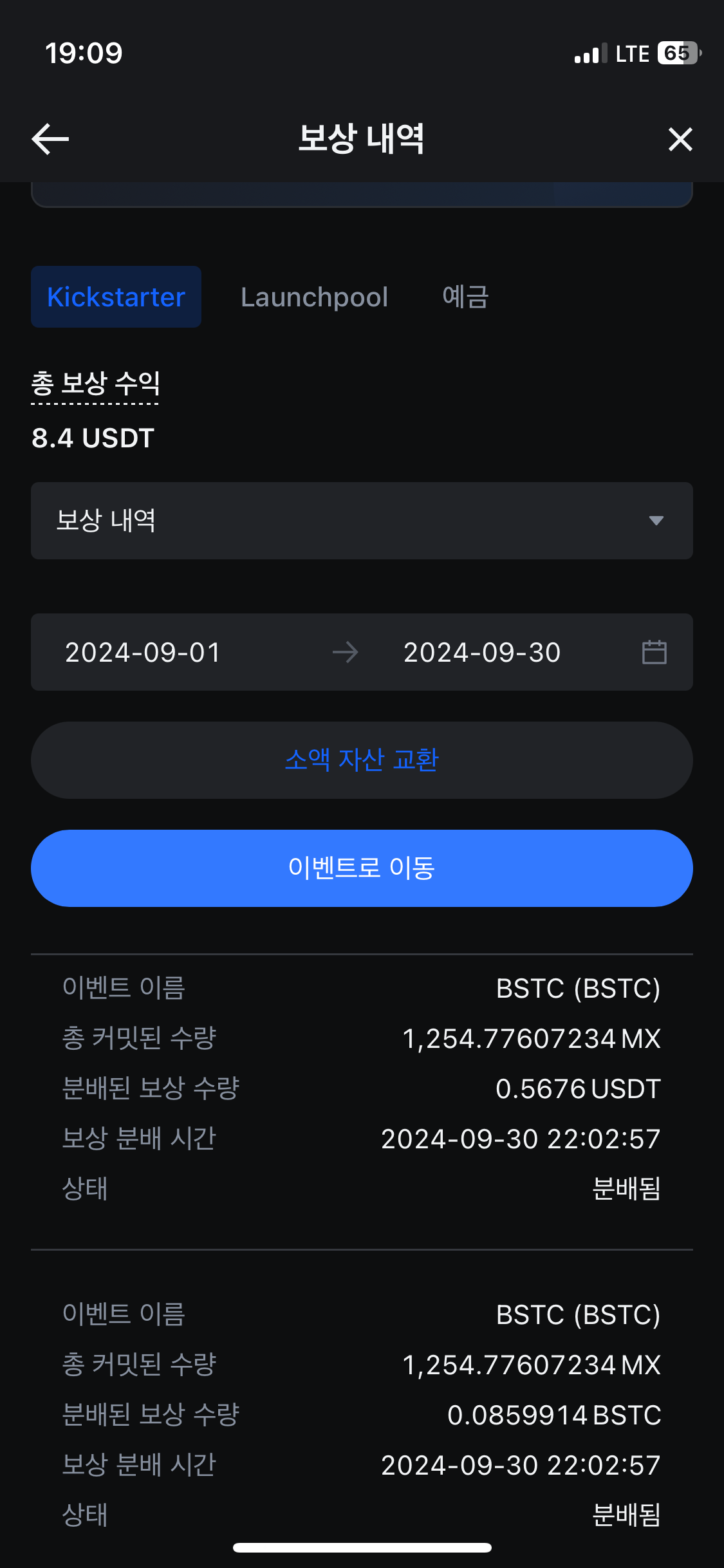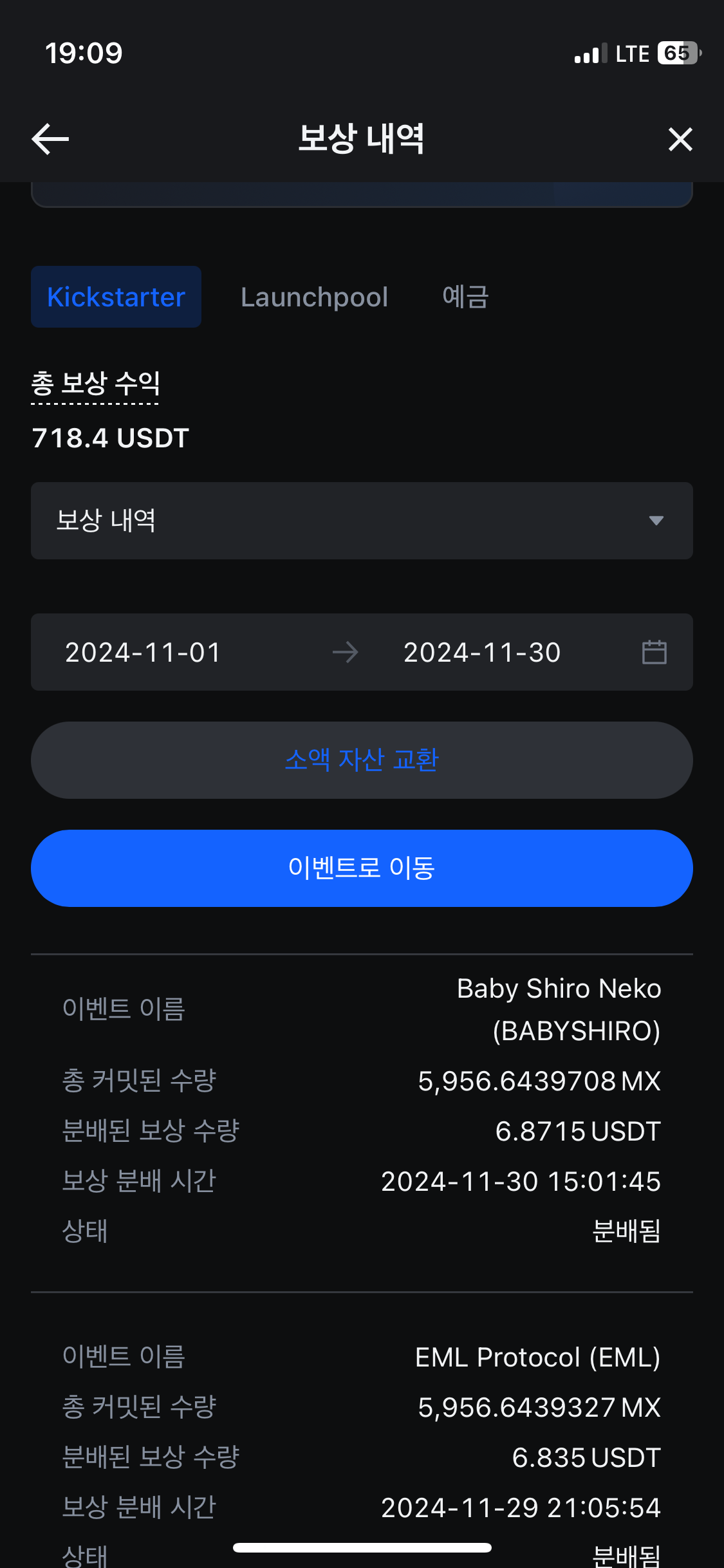 배당은 신규 상장 코인일 때도 있고 USDT 라는 달러 연동 스테이블 코인일 때도 있습니다.