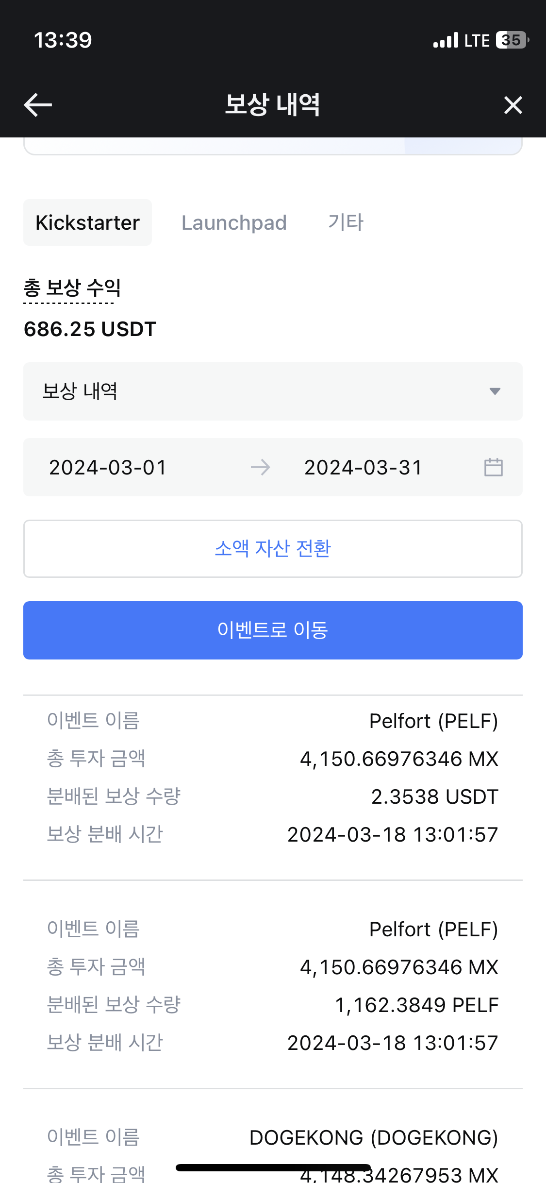 밑에보시면 어떤코인에 참여해서 어떤 보상을 받았는지 볼수 있습니다.