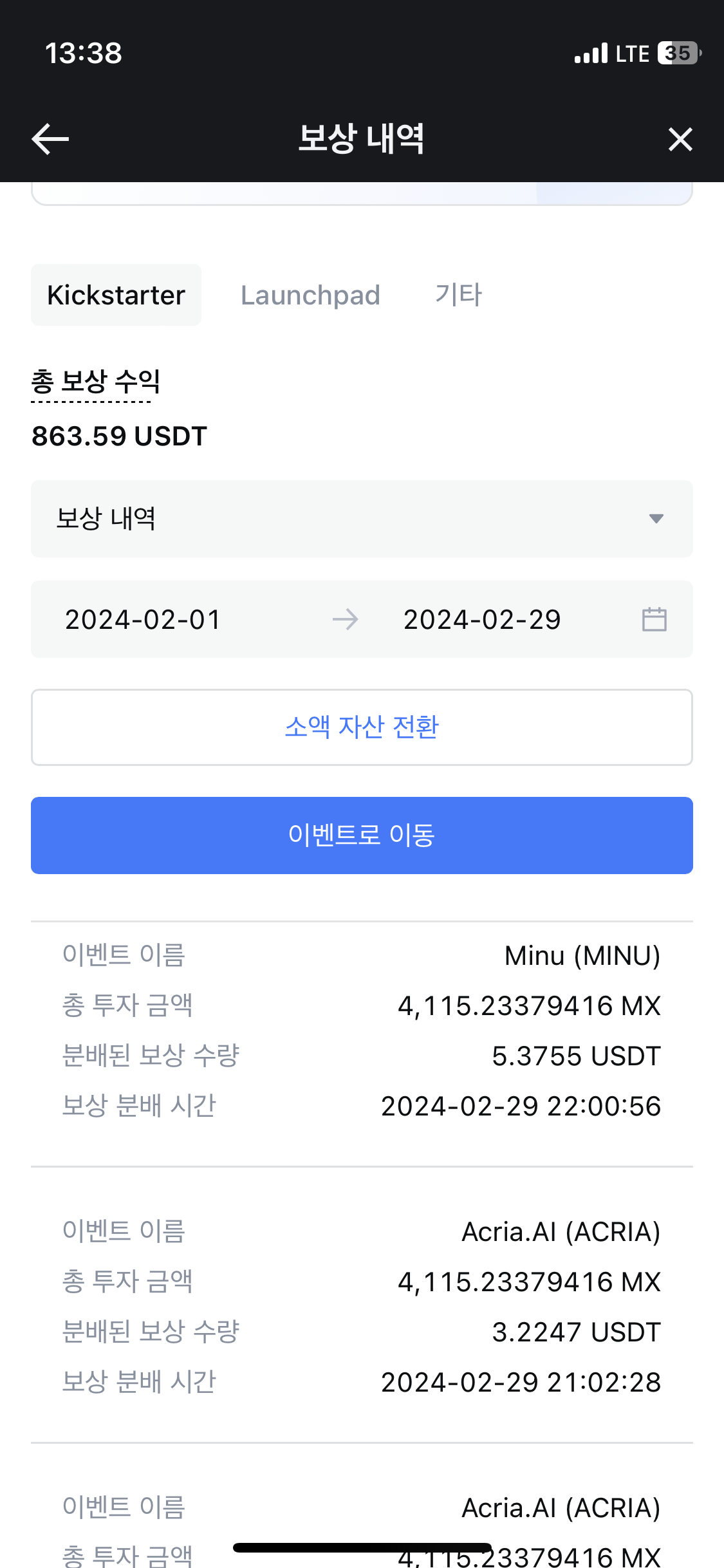 밑에보시면 어떤코인에 참여해서 어떤 보상을 받았는지 볼수 있습니다.