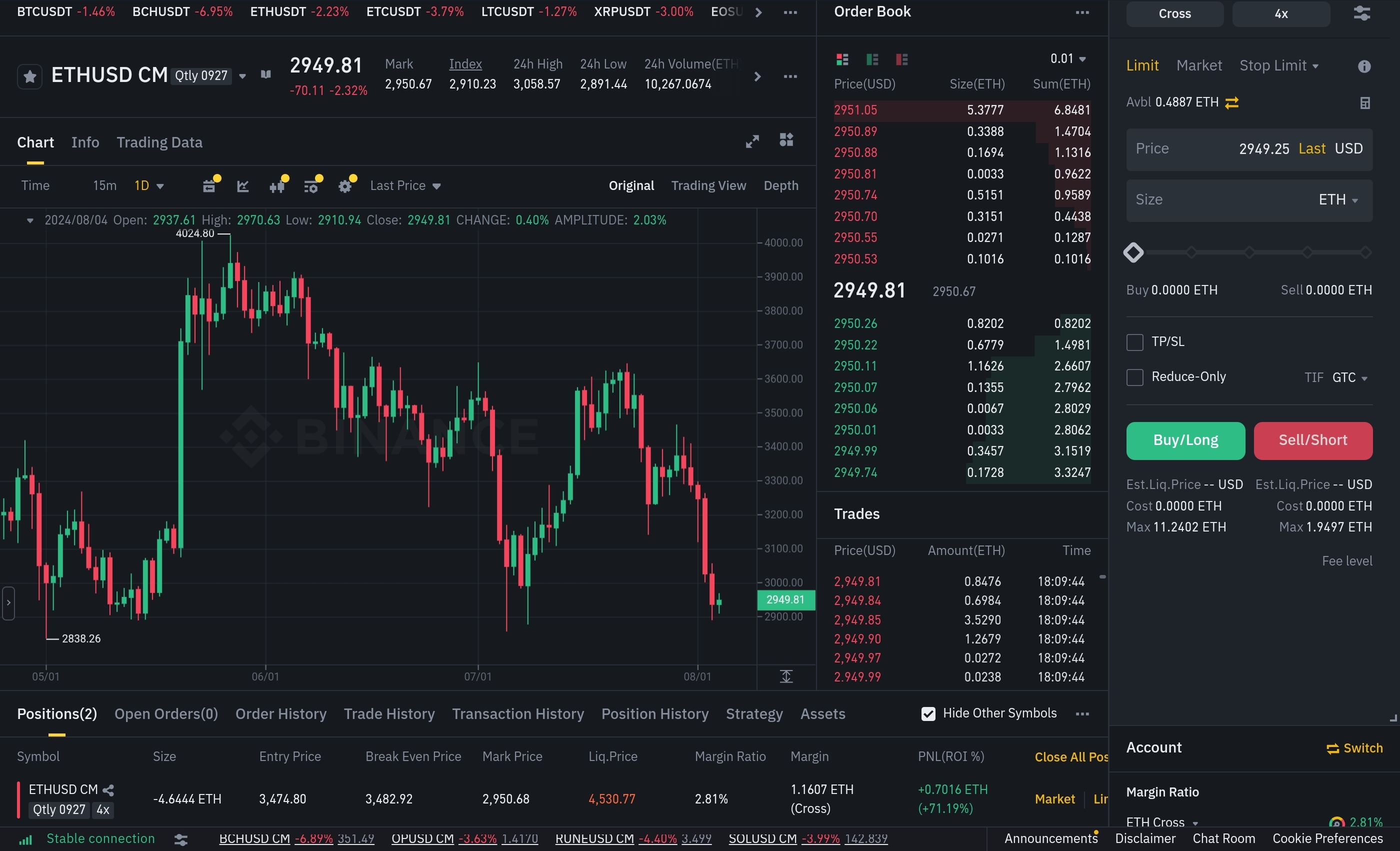 사실 예전에 잡은 포지션이라서 정확히 얼마의 증거금을 빼내였는지는 기억이 안난다. 하지만 대충 3ETH 언저리였다.