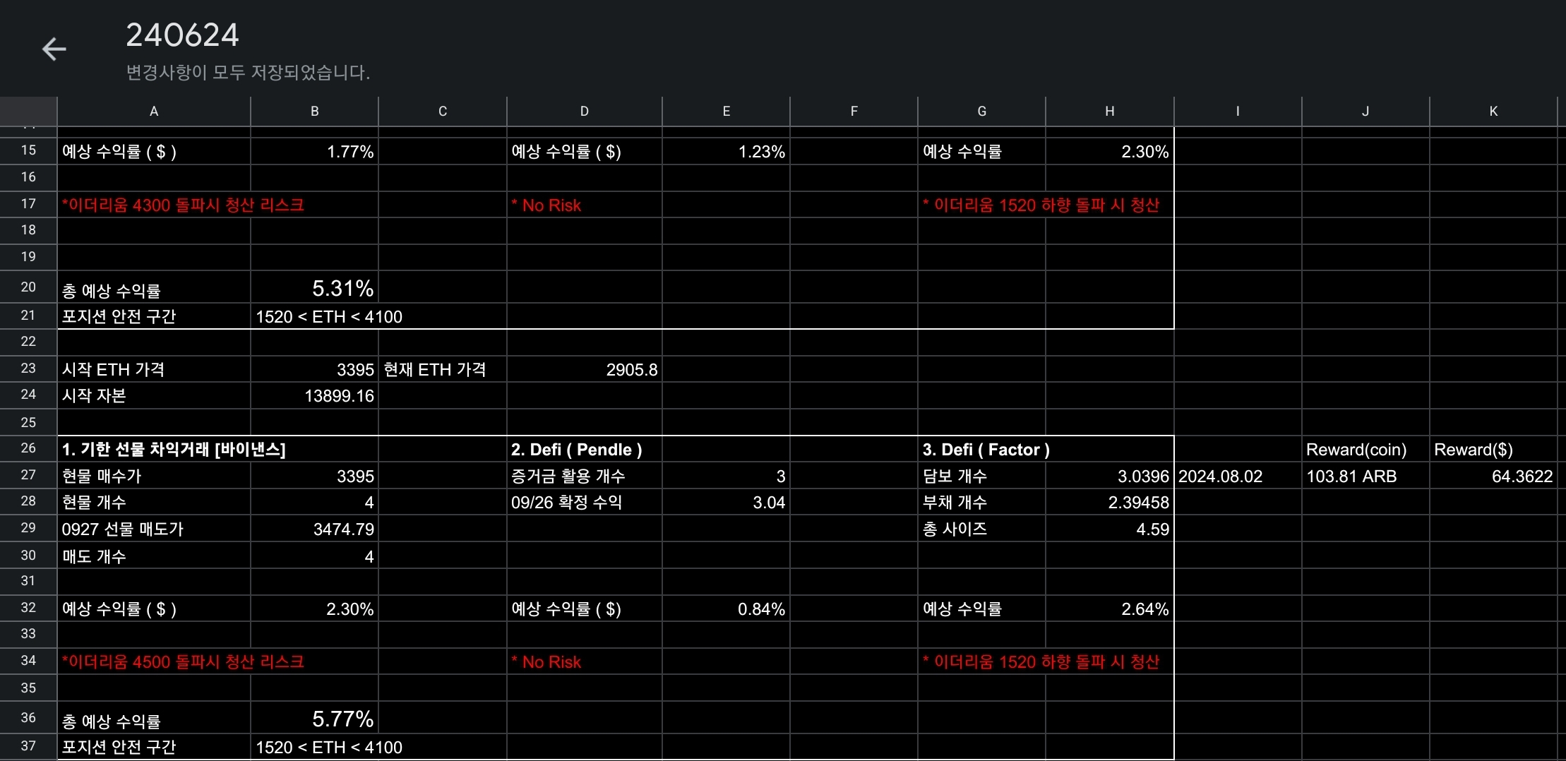 1520  <  ETH < 4500 사이라면 확정수익을 얻을 수 있다.