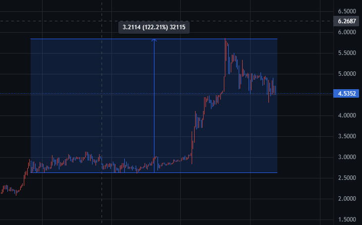 제가 구매한 가격 대비 122% 정도 상승 후 5월23일 현재 하락중에 있습니다.