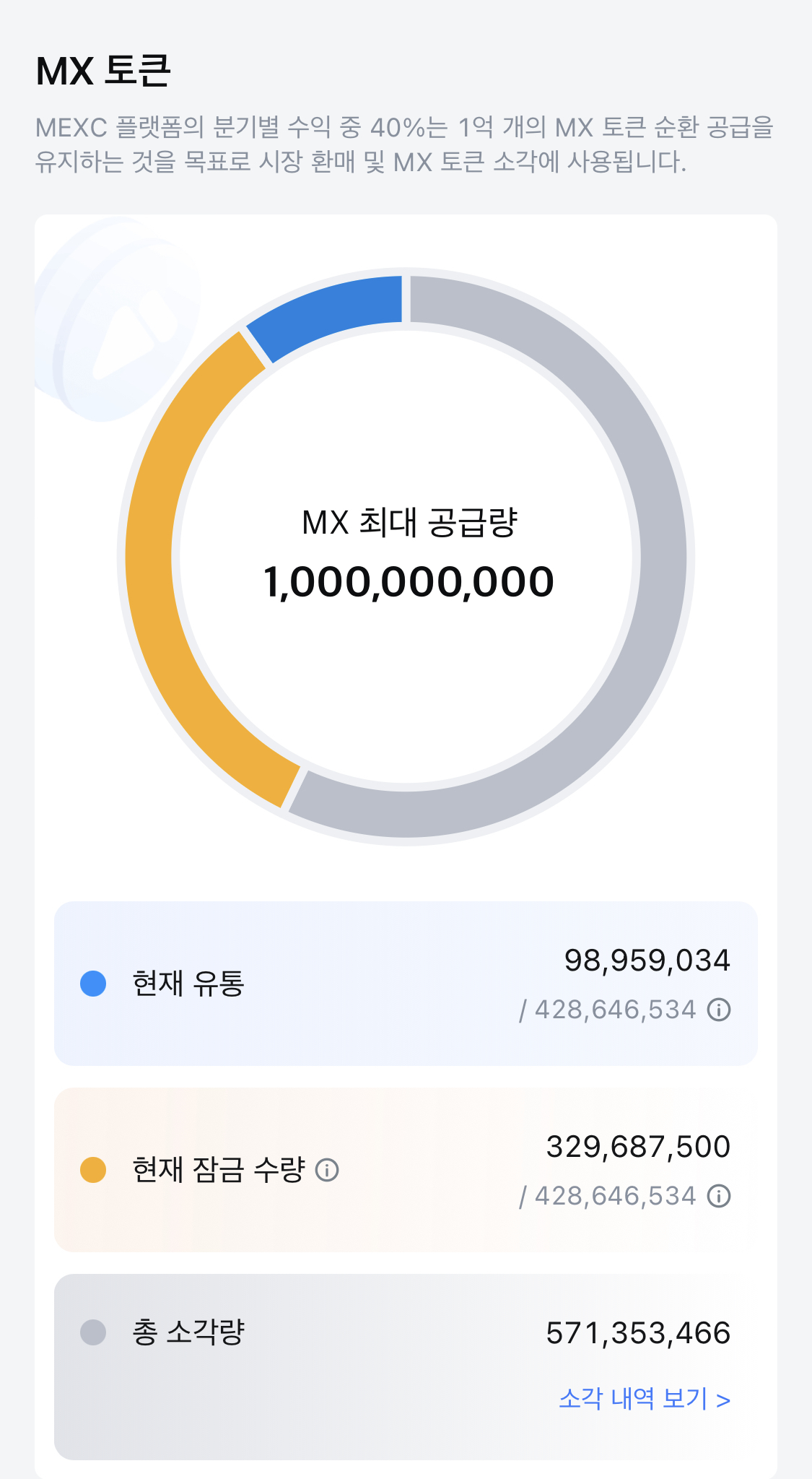 추가발행 없음. 매분기 소각.
