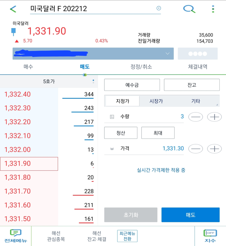 달러 선물 인버스 매도 주문 ( = 달러 매도 ) : 5,000$