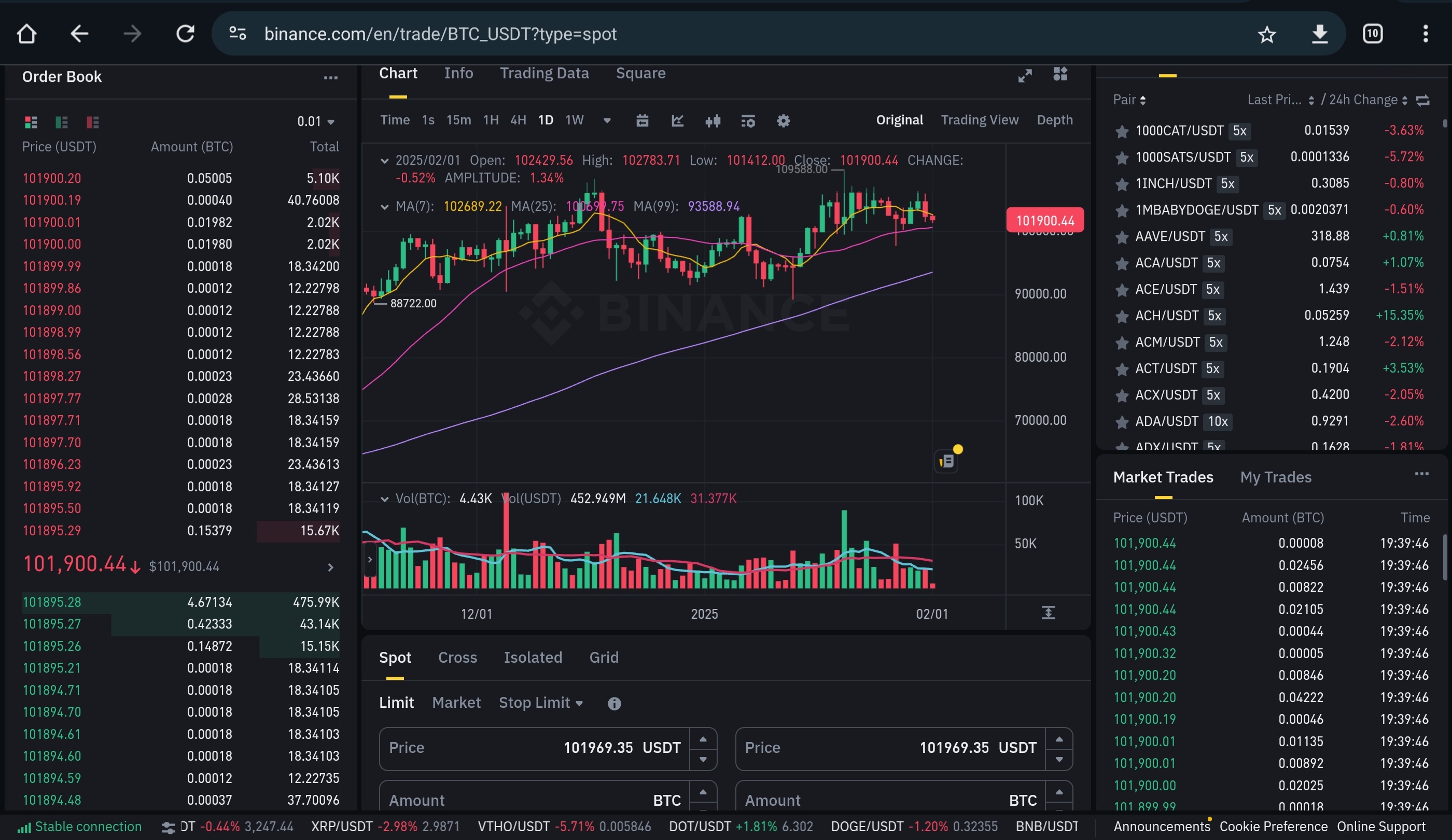 Binance 거래소 1BTC 구매시 약 101.9$ 를 지불해야합니다.