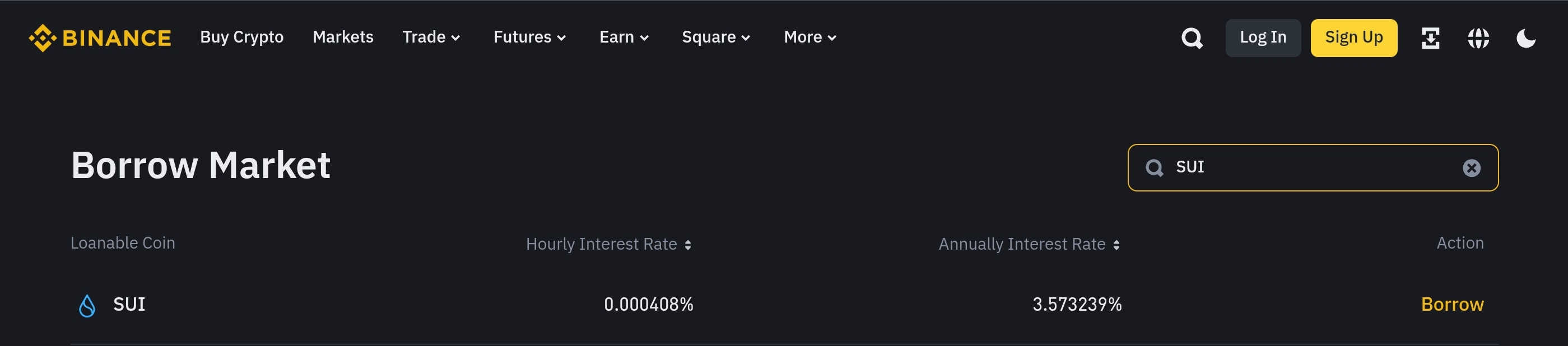 바로 대출입니다. 예를 들면 달러를 기반으로 200개의 SUI 코인을 빌리는 것입니다. 이자를 내야한다는 부분이 있지만 특정 코인들의 대출이자는 매우 낮습니다. USDT를 맡기고 SUI 코인을 빌릴수 있겠죠.