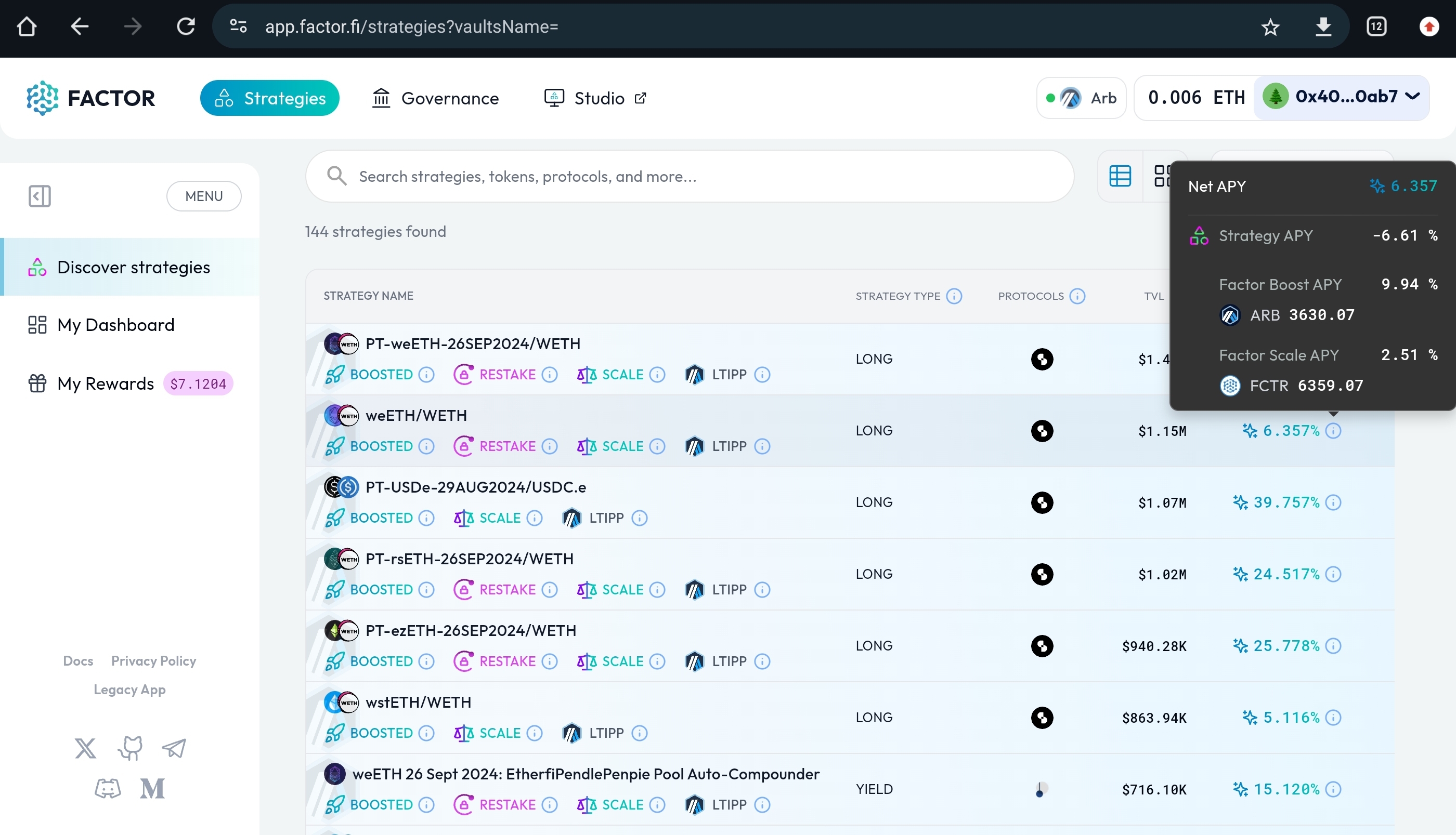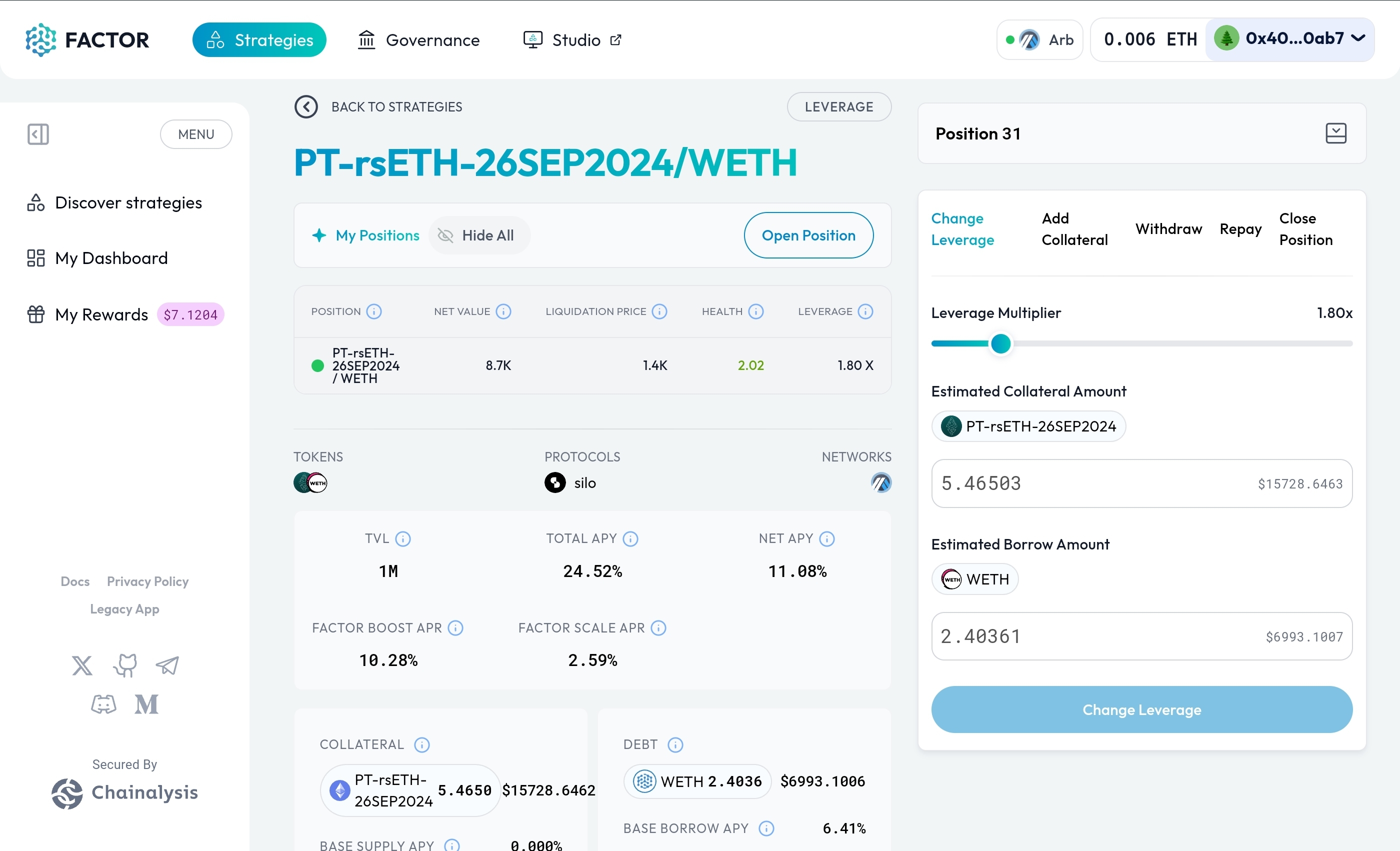 실제로 ETH를 빌리는 것은 silo finance라는 Defi 지만 나는 Factor Finance 에 가서 이 모든 과정을 클릭 한번으로