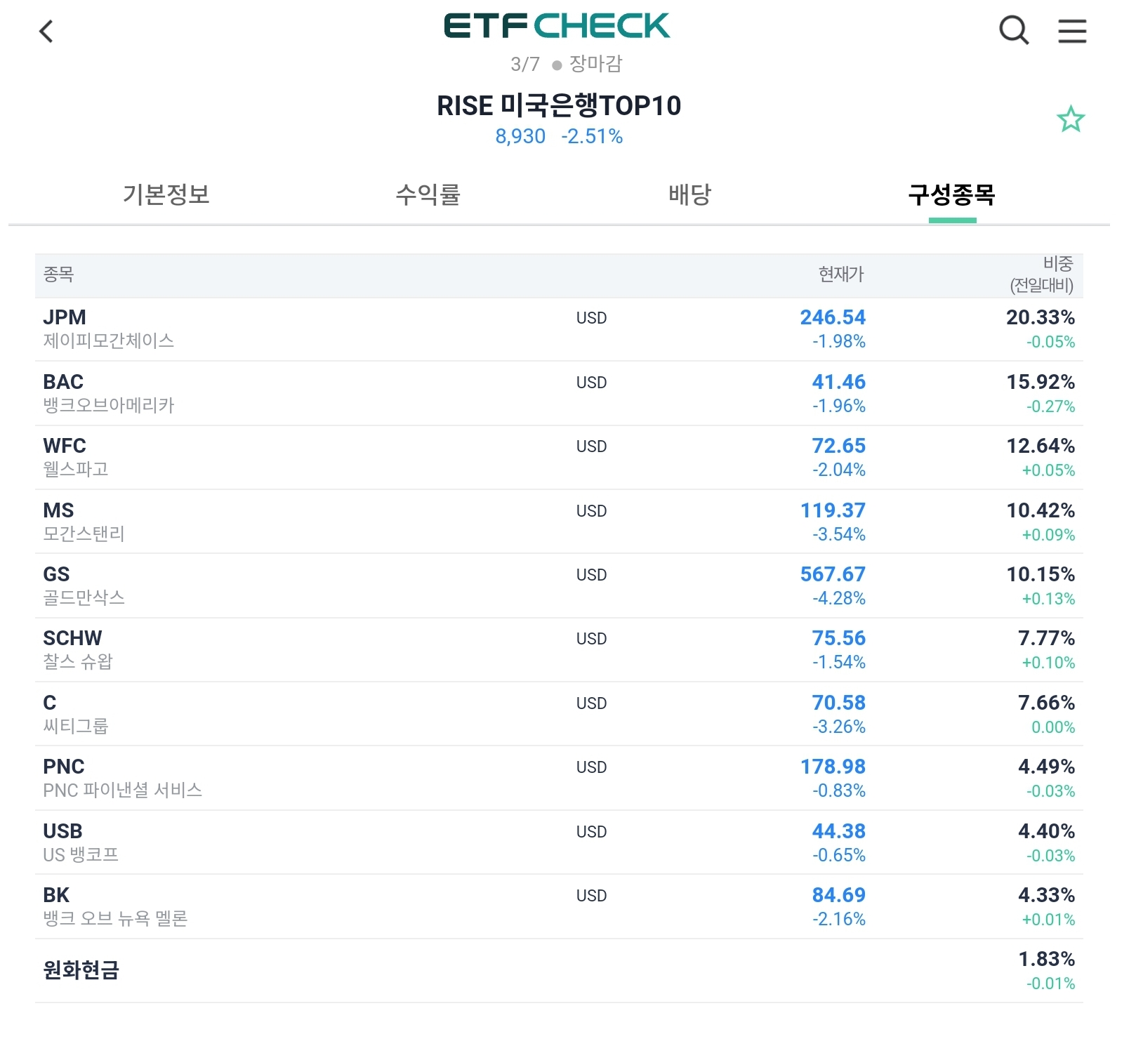 구성종목은 아래와 같습니다.